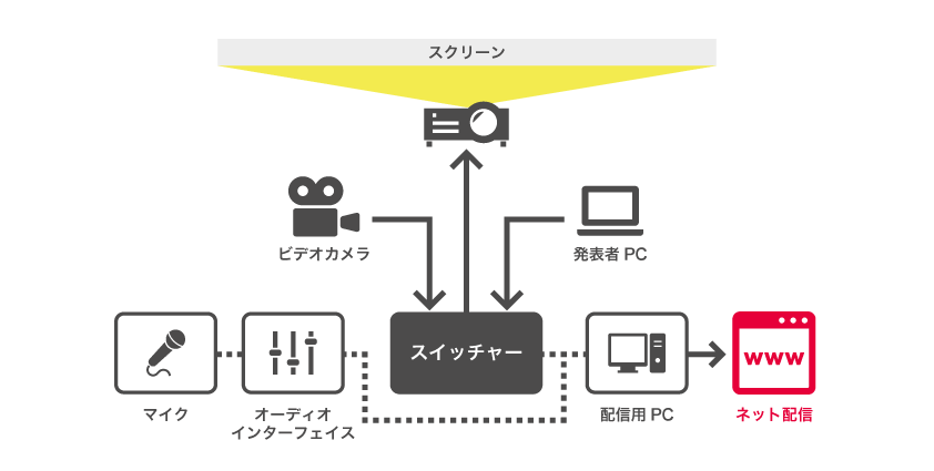 事前に会場の下見をしネット回線のテストを行います。